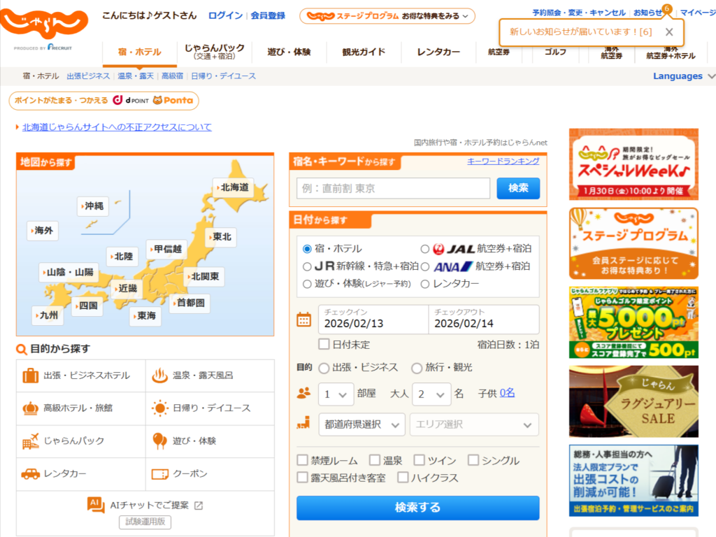 【PR】じゃらんnet 国内宿・ホテルの予約サイトのご紹介です。掲載数が豊富なオンライン予約サービスです。お得なプランもあるそうです‼季節に応じたお得なプランやキャンペーン年間数回開催のキャンペーン、毎月20日開催のキャンペーンなどもあるそうです。サイトメンテナンスがあるそうなのでチェックする際は事前確認がおすすめです。メンテナンススケジュールは下記からチェックいただけます。こちら臨時メンテナンスの場合は、都度上記ページにて事前告知してくださるそうです。 詳細はこちらをクリック‼ おすすめ情報 リブマックスリゾート鬼怒川 10,450円(税込)~/人 鬼怒川温泉鬼怒川線「小佐越駅」から徒歩10分・「鬼怒川温泉」よりタクシーにて10分『全客室天然温泉掛け流露天風呂付』 四季折々の鬼怒川を望む内湯&露天風呂から眺める絶景現在『日光の食×旬味覚』をテーマにしたブッフェが開催されているそうです。他にもカラオケ・卓球など充実のアイテムもあるそうです。 ペットと泊まれるコテージ 塩原グリーンビレッジ 5,000円(税込)~/人 福渡温泉 (塩原温泉)東北道・西那須野塩原ICから塩原方面へ14km。東北新幹線那須塩原駅よりバスで塩原温泉行き60分☆ペットのお連れでも利用可能☆地元産のお肉を使ったBBQやお鍋・豚しゃぶ等お食事付きプランは手ぶらで利用できるそうです♪自家源泉の温泉は宿泊者無料・入り放題とのこと‼ 商材名 じゃらんnet運営者 I.A※当サイトはアフィリエイトプログラムを利用し宣伝目的で作成しております。